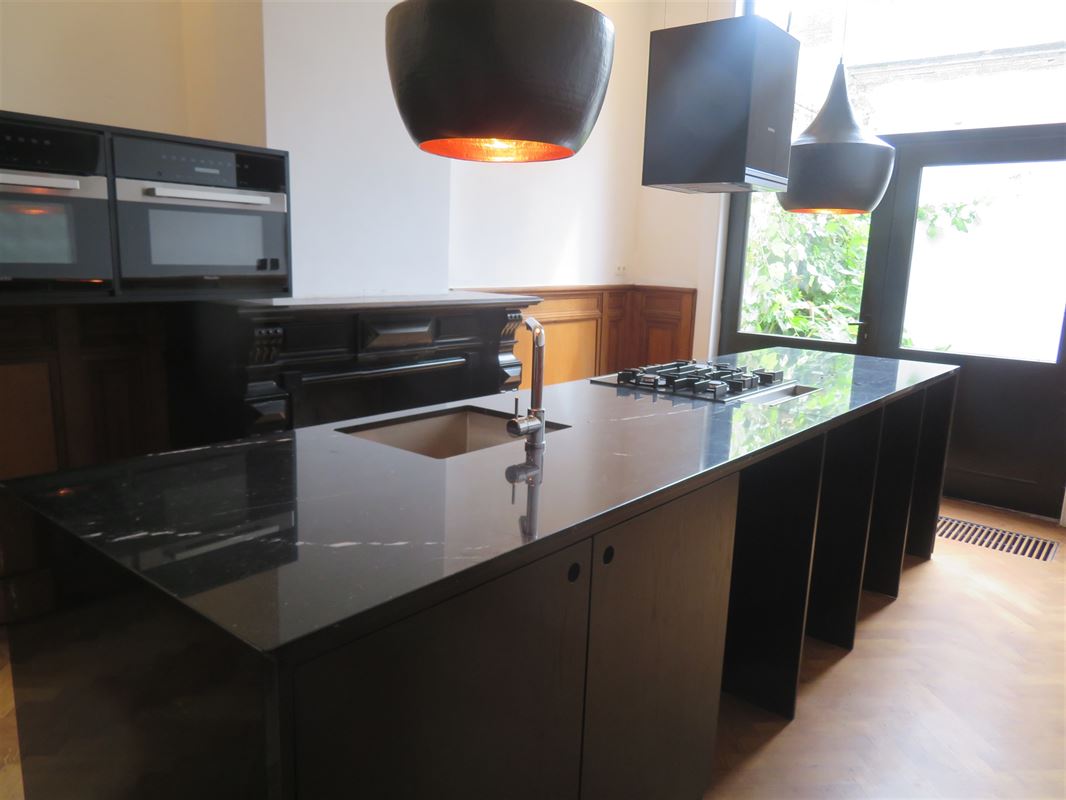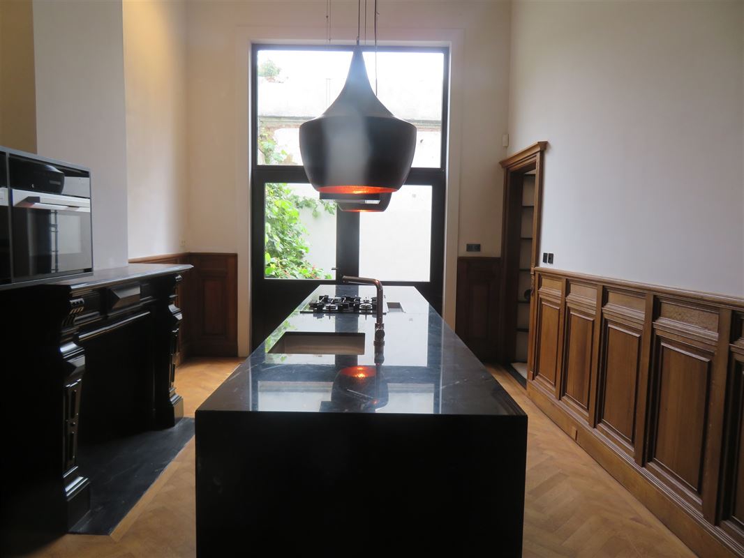 Prachtig, rustig, gelijkvloers duplex appartement in beschermde trapgevelwoning in autoluwe straat in hartje Antwerpen oude stad regio "Academie" met 2 slaapkamers, 2 badkamers en rustig charmant stadstuintje. Het appartement bestaat uit een inkomhal met aansluitend de woonkamer met hoge met sierpleister gedecoreerde plafonds evenals originele schouw en visgraatparket. Aansluitend hebben we een met zwarte marmer ingerichte leefkeuken met Miele toestellen. Vanuit de keuken, hebben we dan ook toegang tot de prachtige rustige binnentuin.