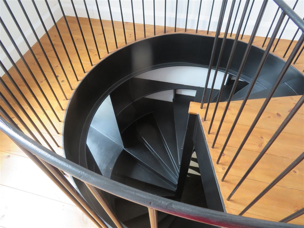 Met een unieke zwarte draaitrap gaan we dan naar de 2e verdieping waar er 2 slaapkamers en 2 badkamers zijn. Beide slaapkamers hebben een eigen dressing kast evenals een eigen badkamer met wastafel en aparte douche. Ook en toilet bij de grootste slaapkamer. Uniek concept dat moet gezien worden!