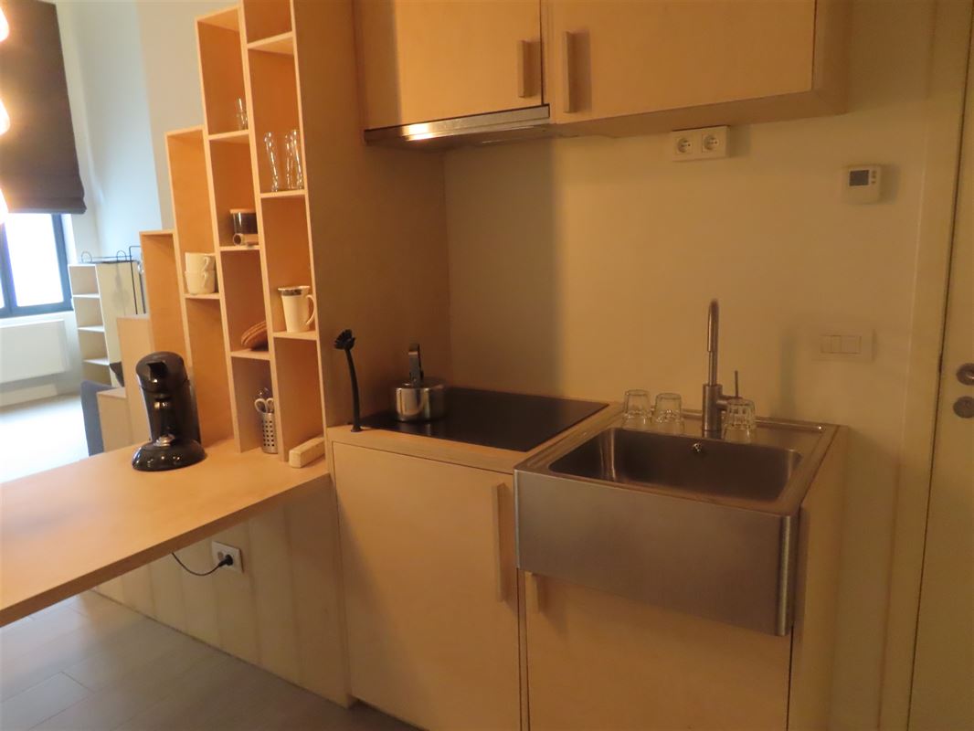 De studio bestaat uit een private ingerichte kitchenette met elektrisch kookfornuis, dampkap, koelkast en microgolfoven. Verder een ruim woonkamer en slaapkamer op mezzanine niveau. Eigen aparte badkamer met douche, toilet en wastafel. Eveneens aansluiting voor een wasmachine.